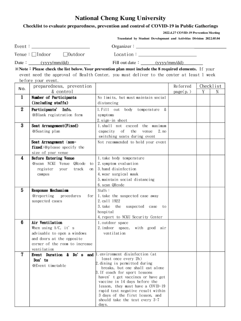 Checklist to evaluate preparedness, prevention and control of COVID-19 in Public Gatherings