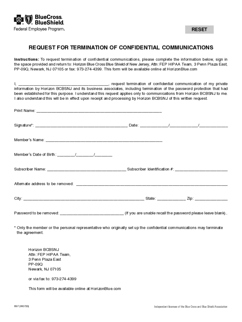 RESETREQUEST FOR TERMINATION OF CONFIDENTIAL COMMUNICATIONS Instructions: To request termination of confidential communications, please complete the information below, sign in the space provided and