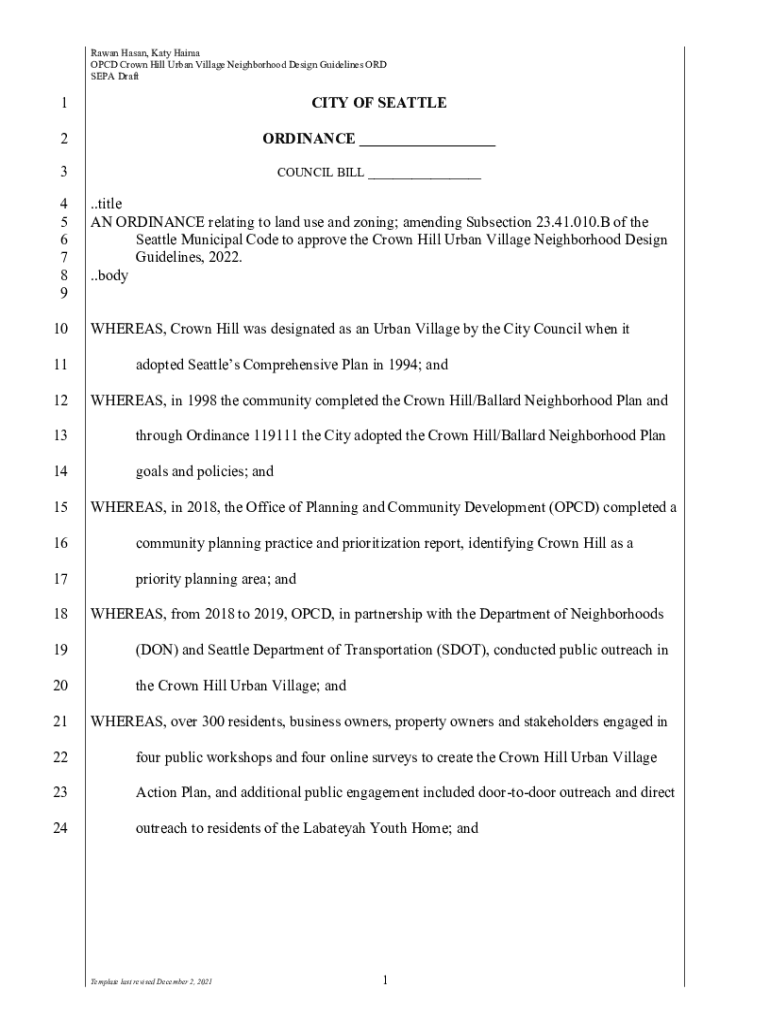 Rowan Haman, Katy Haifa OCD Crown Hill Urban Village Neighborhood Design Guidelines ORD SEPA Draft1CITY OF SEATTLE2ORDINANCE ___3COUNCIL BILL ___4 5 6 7 8 9.title AN ORDINANCE relating to land use