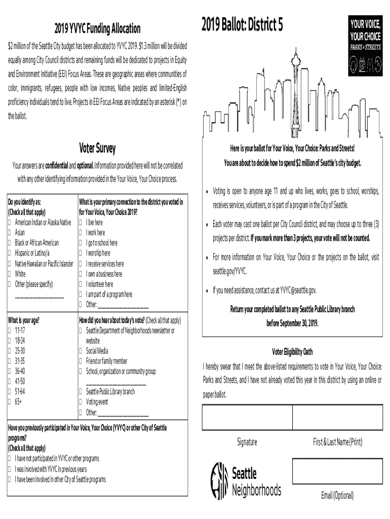 2019 NYC Funding Allocation2019 Ballot: District $52 million of the Seattle City budget has been allocated to NYC 2019. $1.3 million will be divided equally among City Council districts and remaining