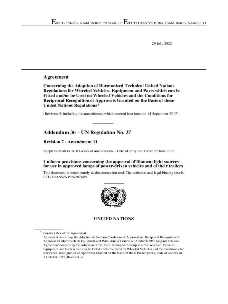 E/ECE/324/Rev.1/Add.36/Rev.7/Amend.11E/ECE/TRANS/505/Rev.1/Add.36/Rev.7/Amend.11 29 July 2022Agreement Concerning the Adoption of Harmonized Technical United Nations Regulations for Wheeled Vehicles,