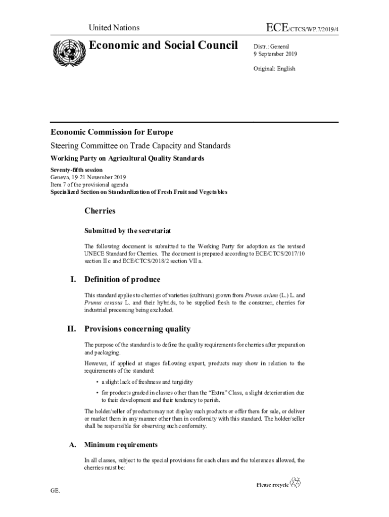 United NationsEconomic and Social Council ECE/CCS/WP.7/2019/4 Dist.: General 9 September 2019 Original: EnglishEconomic Commission for Europe Steering Committee on Trade Capacity and Standards Working