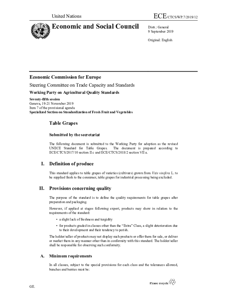 United NationsEconomic and Social Council ECE/CCS/WP.7/2019/12 Dist.: General 9 September 2019 Original: EnglishEconomic Commission for Europe Steering Committee on Trade Capacity and Standards Working