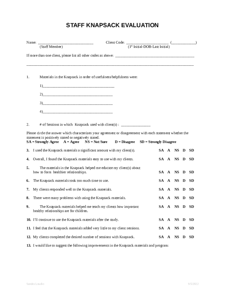 Template STAFF KNAPSACK EVALUATION - Southeastern Louisiana University instructions