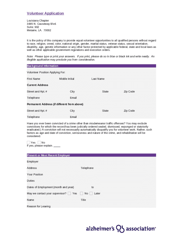 Instructions for the APPLICATION OF EMPLOYMENT - Alzheimer's Association form