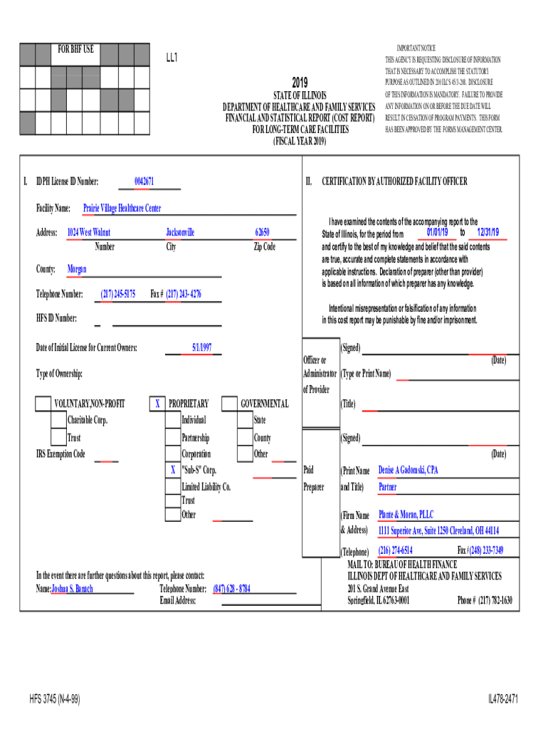 FINANCIAL AND STATISTICAL REPORT (COST REPORT)