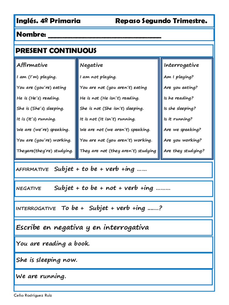 Single. 4 PrimariaRepaso Segundo Trimester. Hombre: ___PRESENT CONTINUOUS