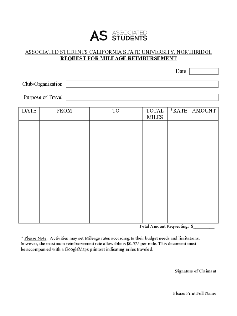Get the free Associated Students Request for Mileage Reimbursement