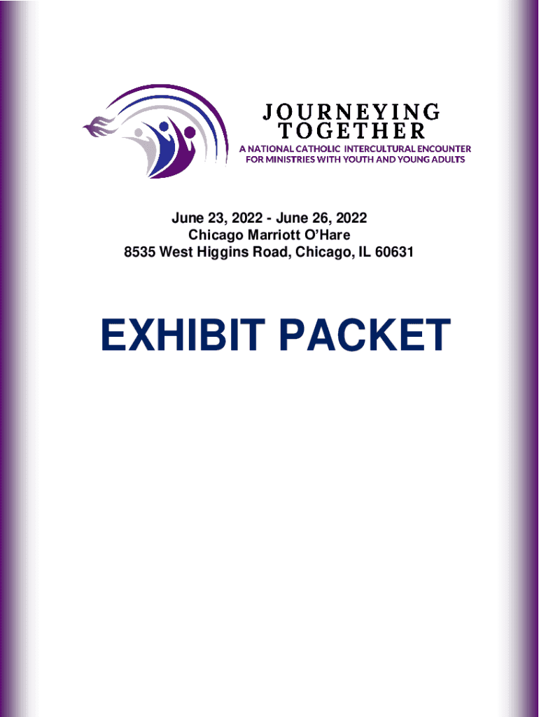 June 23, 2022, June 26, 2022, Chicago Marriott Their 8535 West Higgins Road, Chicago, IL 60631EXHIBIT PACKETExhibit Opportunities The vision of Journeying Together is to translate and implement Pope