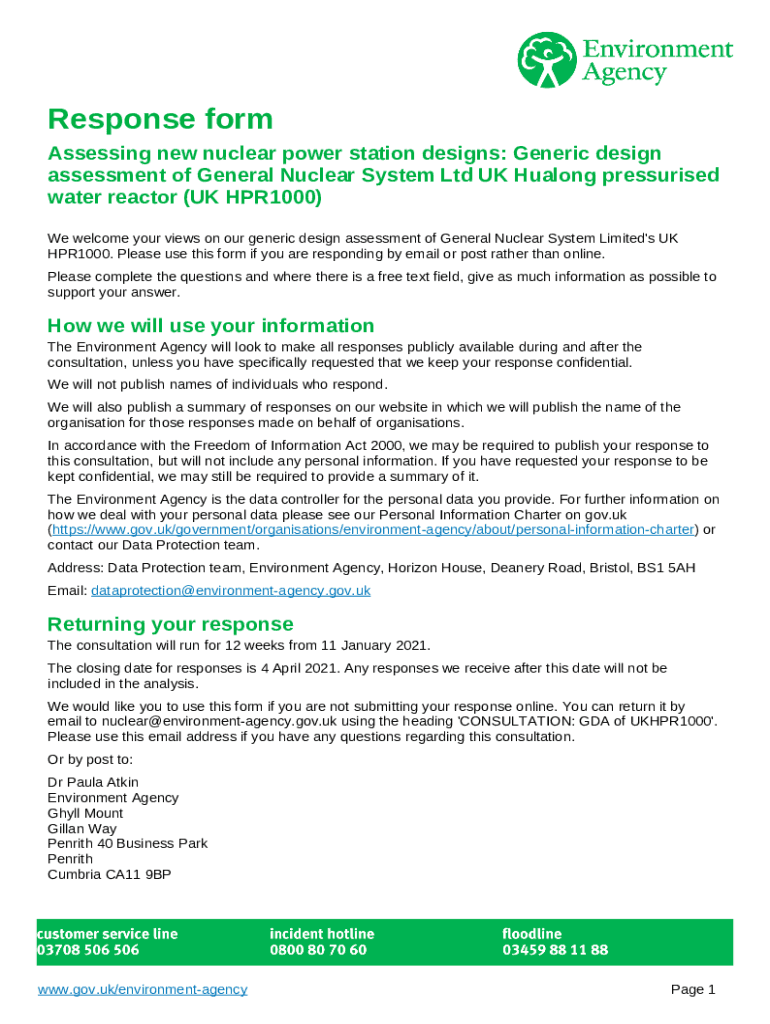 Instructions for the form consult.environment-agency.gov.uknuclearResponse - Environment Agency