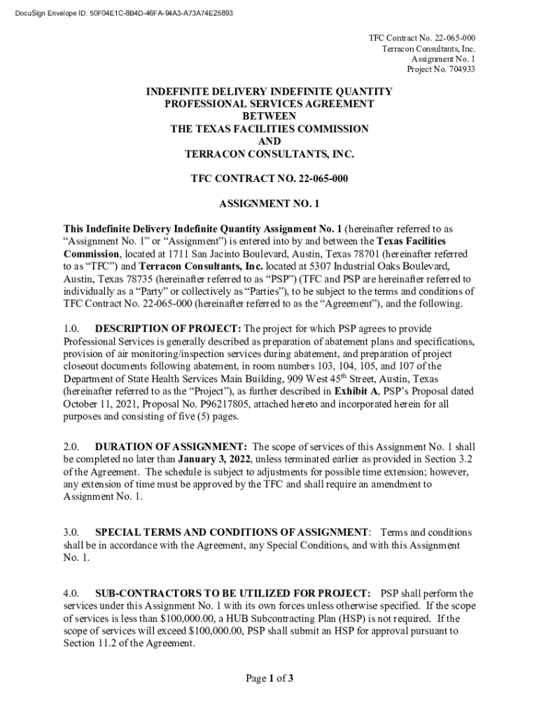 DocuSign Envelope ID: 50F04E1C8B4D46FA94A3A73A74E25893TFC Contract No. 22065000 Terracon Consultants, Inc. Assignment No. 1 Project No. 704933INDEFINITE DELIVERY INDEFINITE QUANTITY PROFESSIONAL SERVICES
