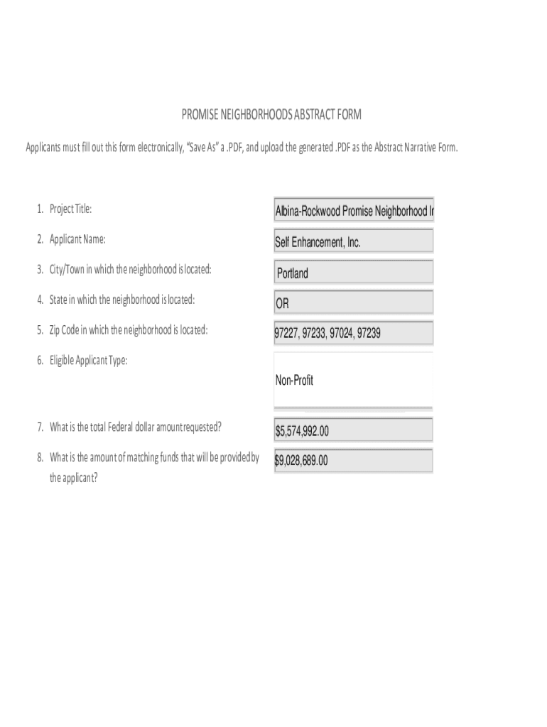 PROMISE NEIGHBORHOODS ABSTRACT FORM Applicants must fill out this form electronically, Save As a .PDF, and upload the generated .PDF as the Abstract Narrative Form.1. Project Title:AlbinaRockwood