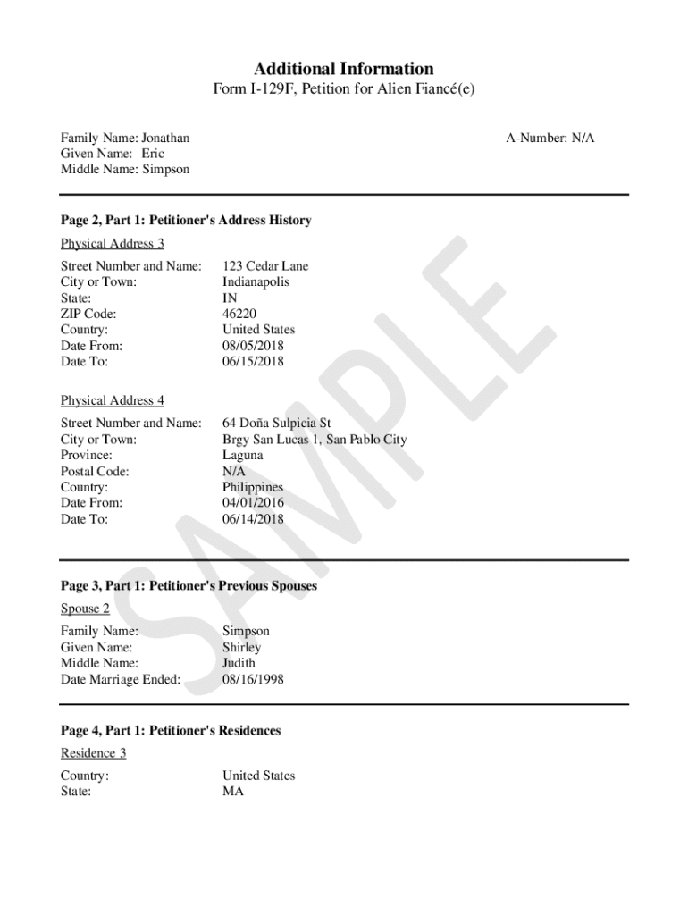 Middle Name: SimpsonANumber: N/Page 2, Part 1: Petitioner\'s Address History