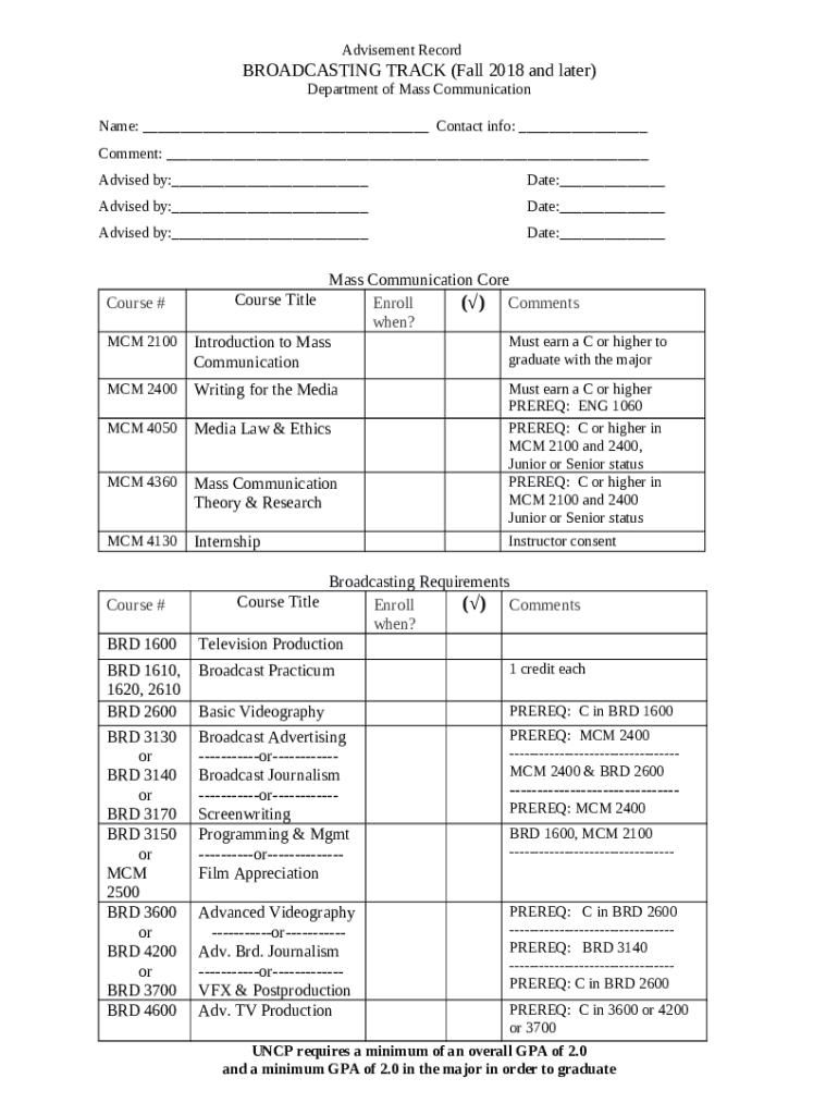 Template Advisement Record - University of North Carolina at instructions