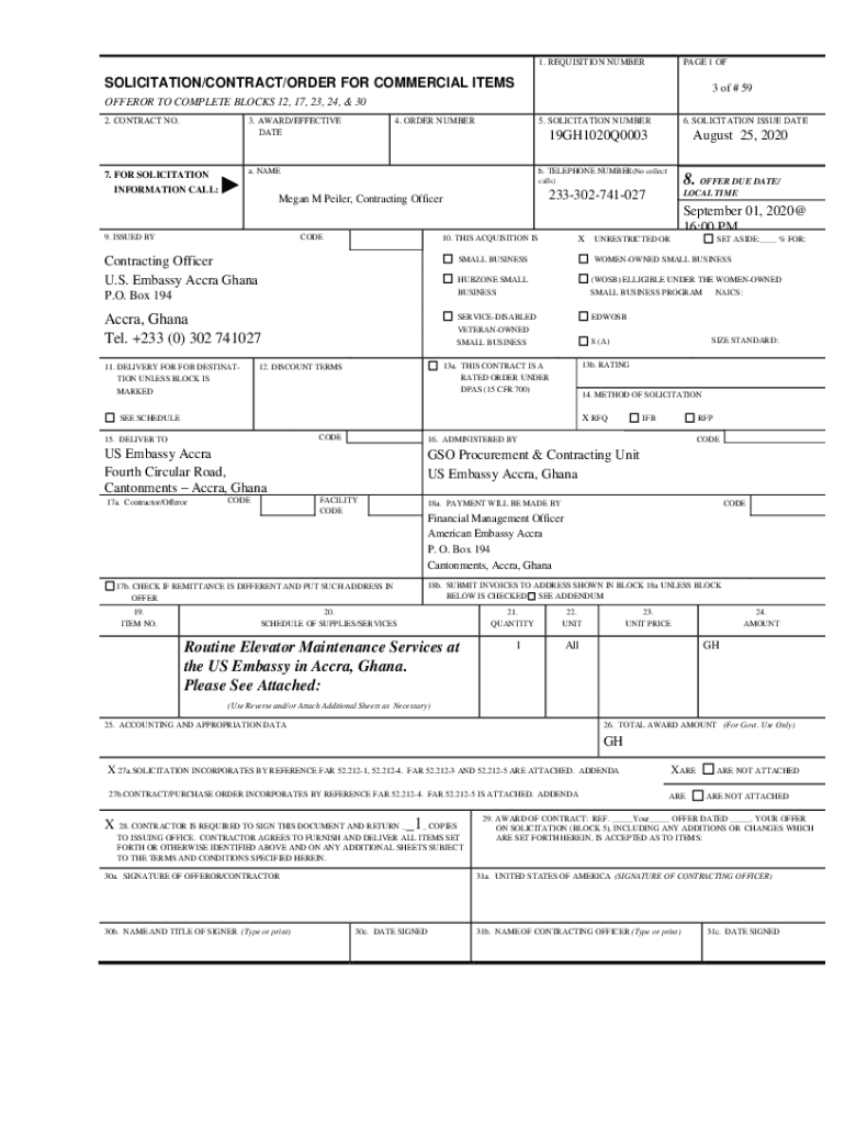 1. REQUISITION NUMBERING 1 SOLICITATION/CONTRACT/ORDER FOR COMMERCIAL ITEMS3 of # 59OFFEROR TO COMPLETE BLOCKS 12, 17, 23, 24, & 30 2. CONTRACT NO.3. AWARD/EFFECTIVE DATE4. ORDER NUMBER5. SOLICITATION