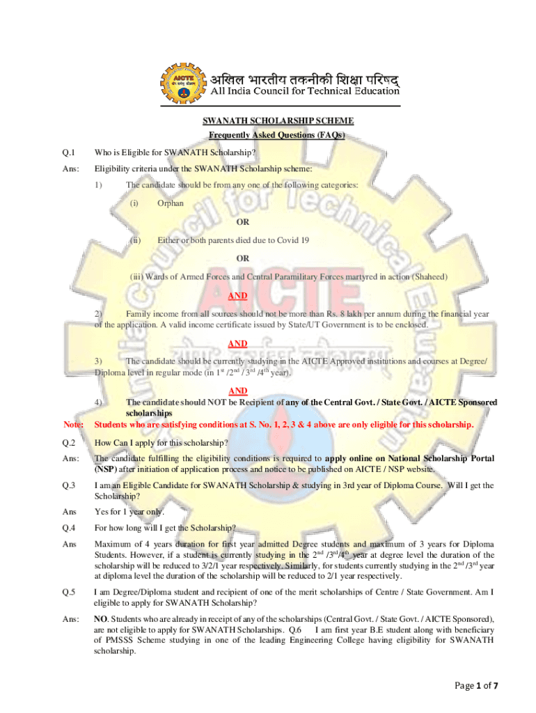 Get the free SWANATH SCHOLARSHIP SCHEME Frequently Asked Questions (FAQs) OR