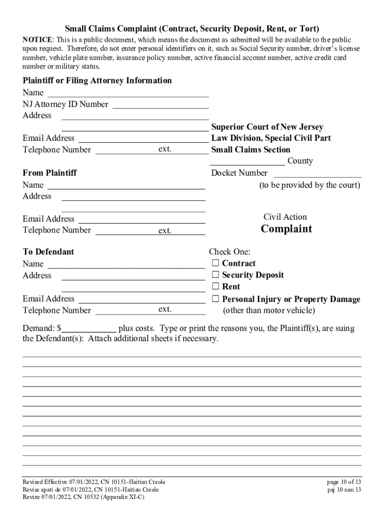 Get the free How to Sue for Up To $5,000 in Small Claims Court Non-Motor Vehicle Case/Kijan pou A...
