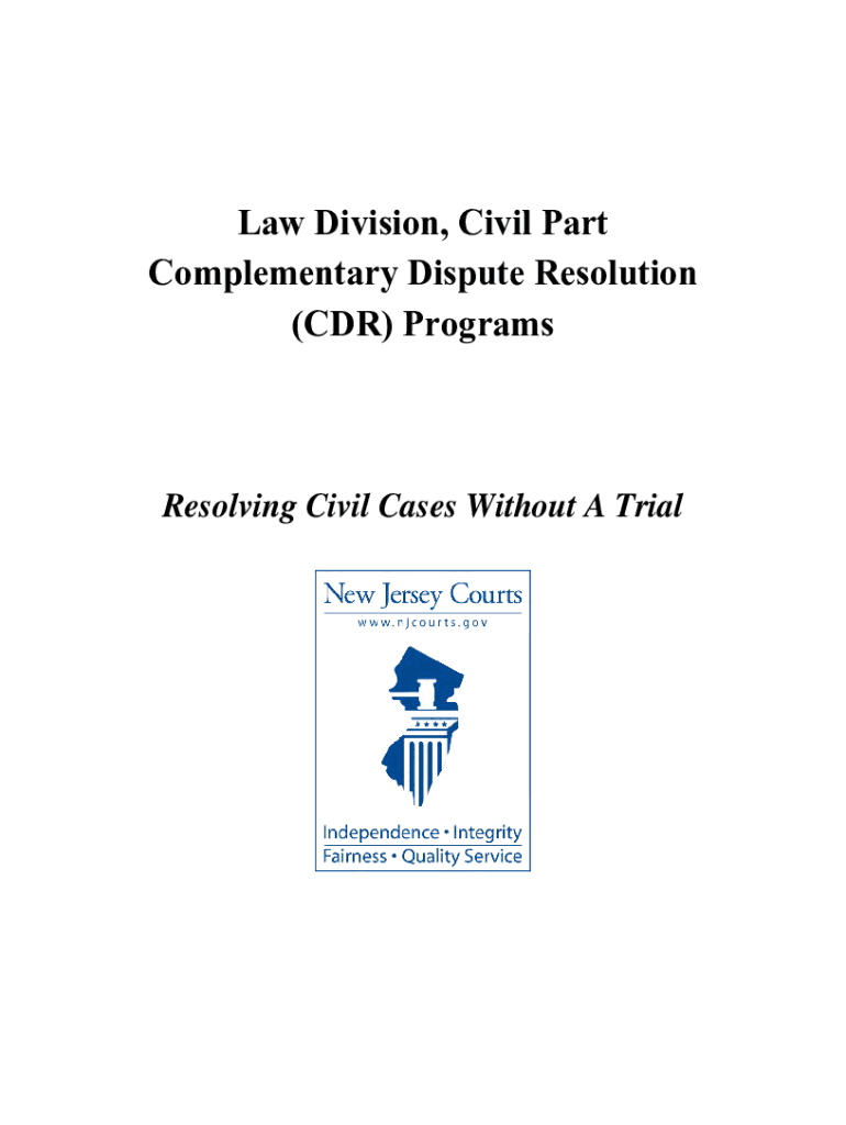(CDR) ProgramsResolving Civil Cases Without A Trial New Jersey Judiciary should provide citizens with a full set of options for resolution