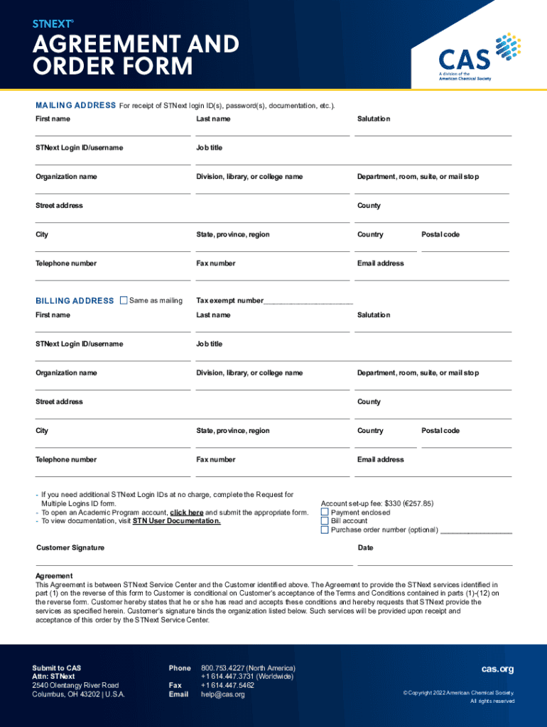 Get the free STN Agreement and Order Form - CAS.org