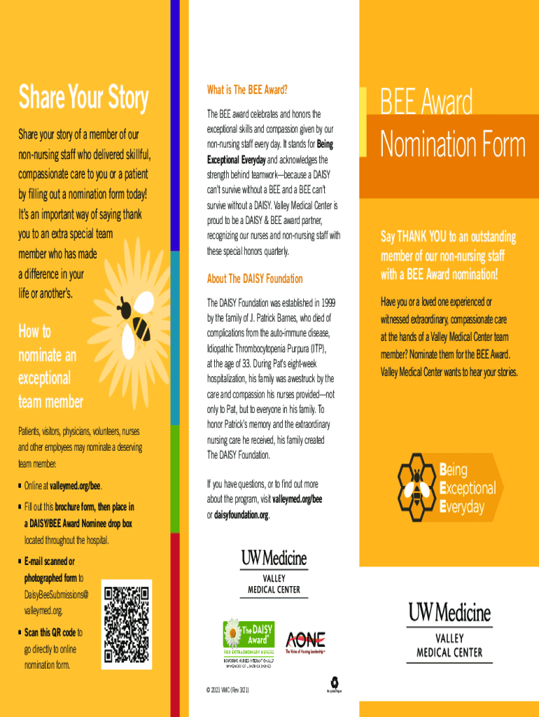 Share Your Story Share your story of a member of our nonnursing staff who delivered skillful, compassionate care to you or a patient by filling out a nomination form today! It's an important way of