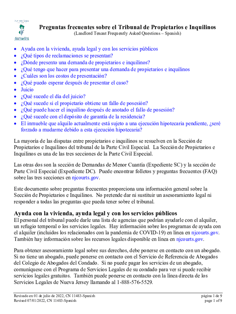 (Landlord Tenant Frequently Asked Questions — Spanish)