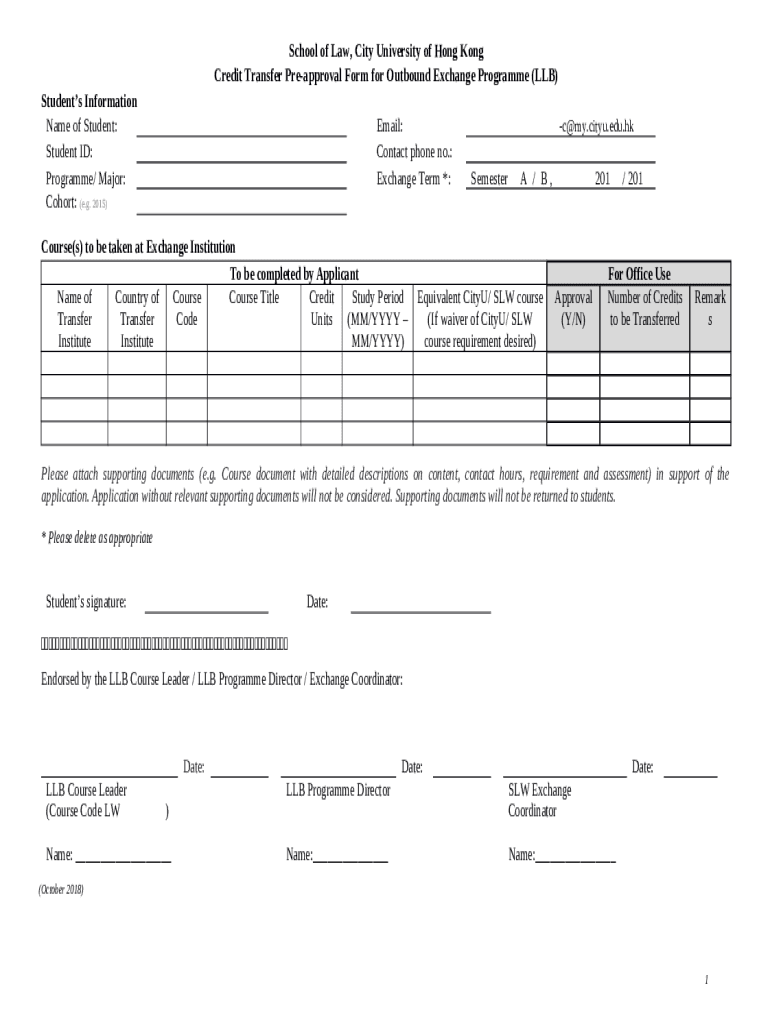 Instructions for the form homeSchool of Law - City University of Hong Kong