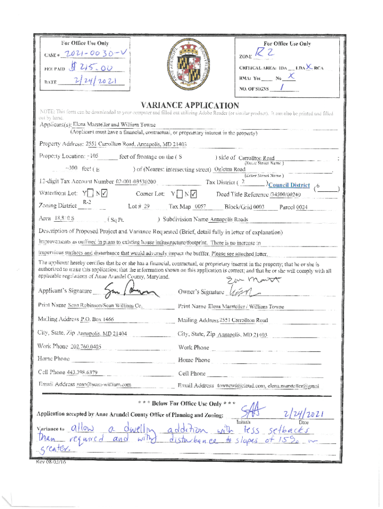 For Office Use Only Office Use Only CASE# Z^7/0t30v/Zone. Oct dM 2^2.1FEE PAID DATECRITICALAREA: IDA LDA^CRCA BMA; Yes No.NO. OF INVARIANCE APPLICATION Applicant(s): Elena Mars teller and William