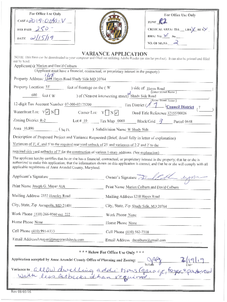 For Office Use Only Office Use Only CASE# o? QC ^ Fit\'ZONE_i2_ Zone _FEE PAIDCRITICALAREA: IDA_LDA^LRCAVBMA: Yes V No ^ NO. OF SIGNAGE of//s7y^ VARIANCE APPLICATIONNOTE. This form can be downloaded