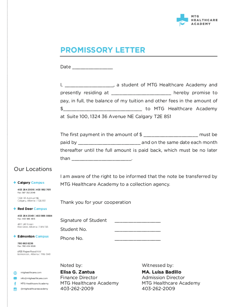 Get the free PROMISSORY LETTER - MTG Healthcare Academy