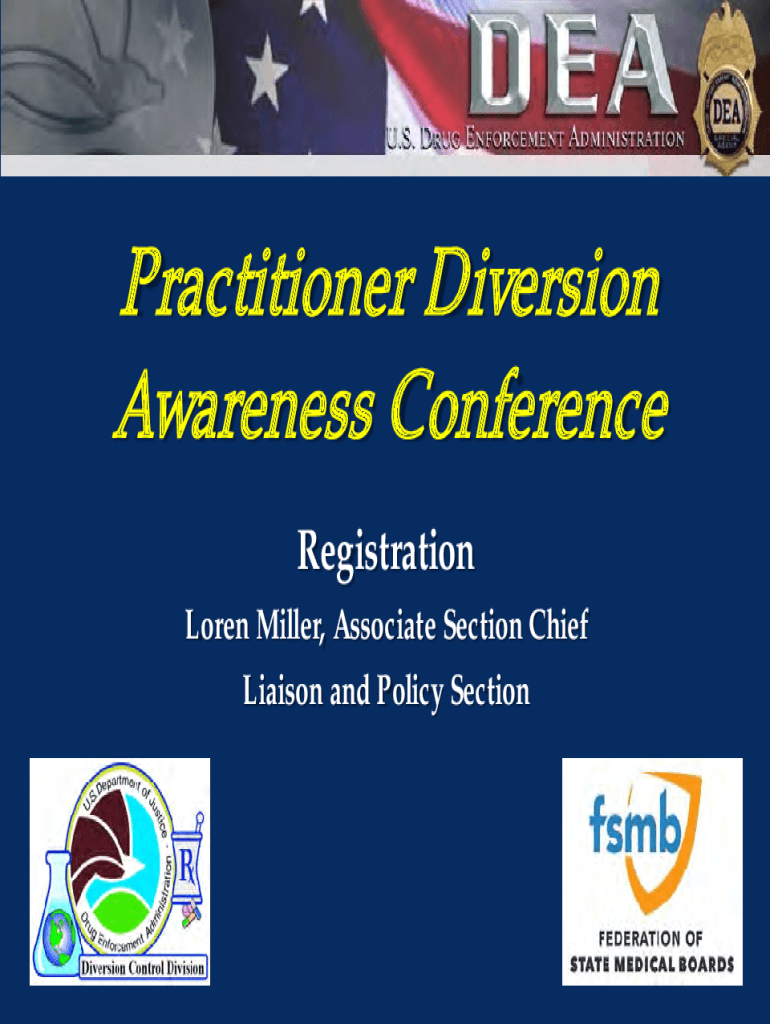 Practitioner Diversion Awareness Conference Registration Loren Miller, Associate Section Chief Liaison and Policy Sectional DISCLAIMER The following presentation was accompanied by an oral presentation