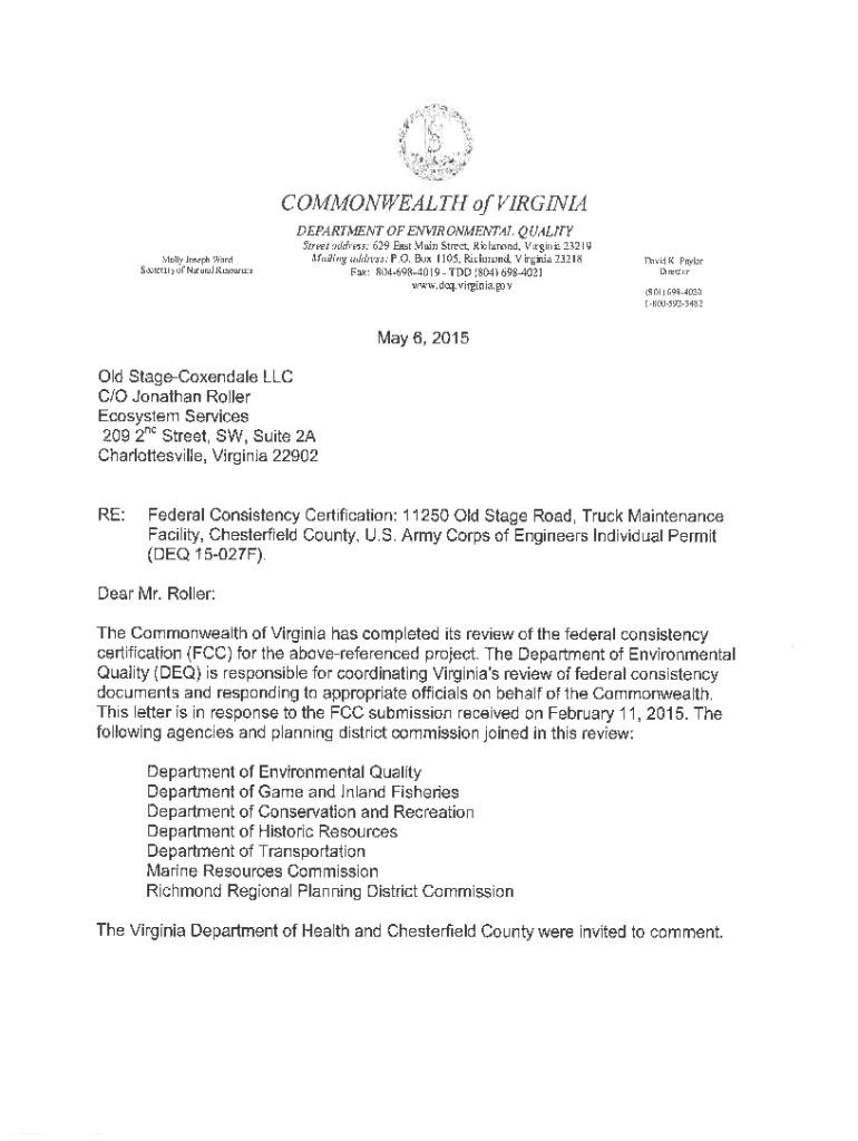 Secretary of Natural ResourcesStreet address: 629 East Main Street, Richmond, Virginia 23219