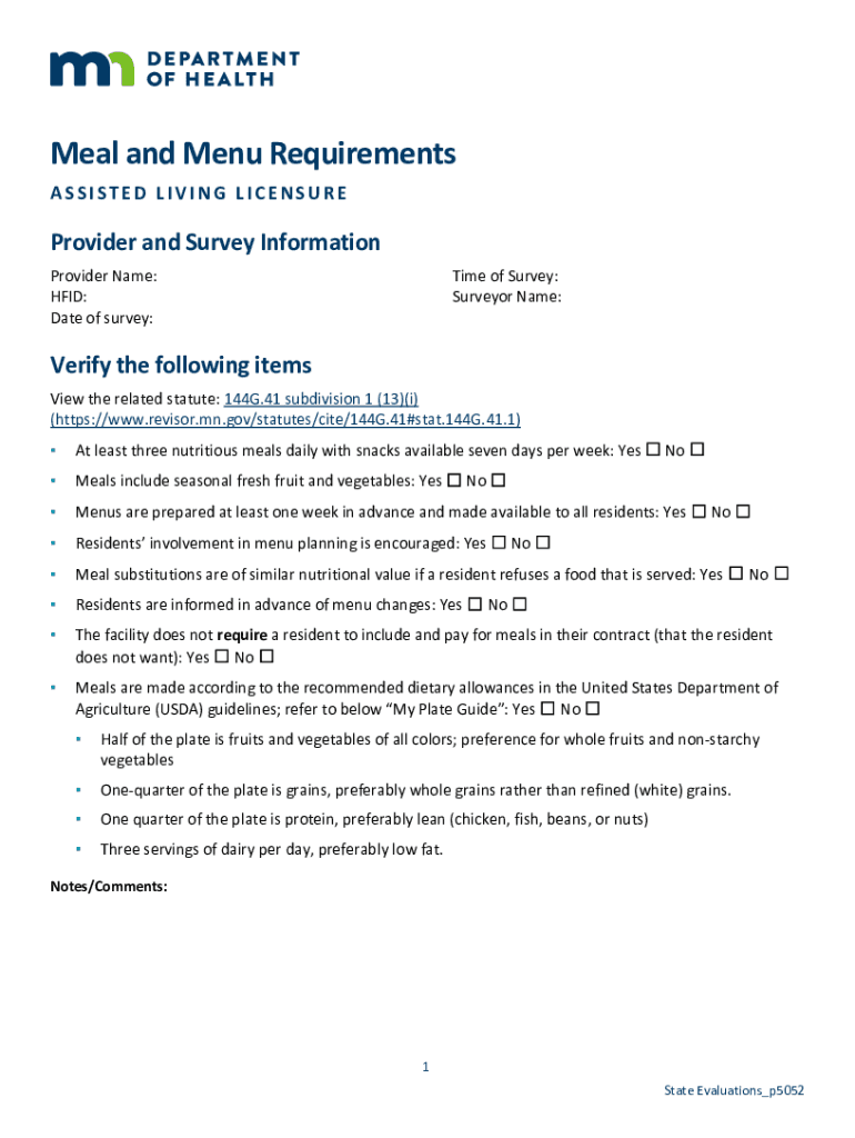 Get the free Assisted Living Licensure Meal and Menu Requirements. state survey forms, assisted l...