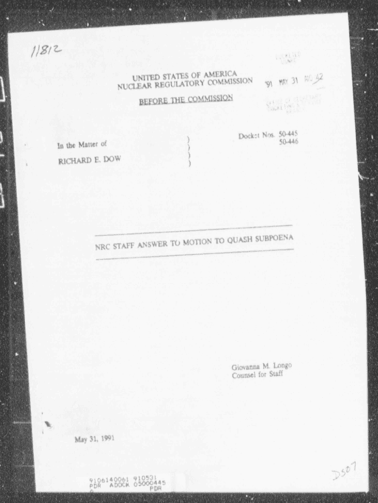 Get the free NRC Staff answer to motion to quash subpoena.* NRC requests that ...