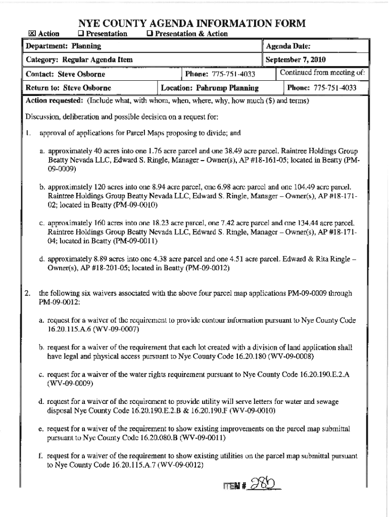 Get the free NYE COUNTY AGENDA INFORMATION FORM Action Presentation 0 Presentation ...