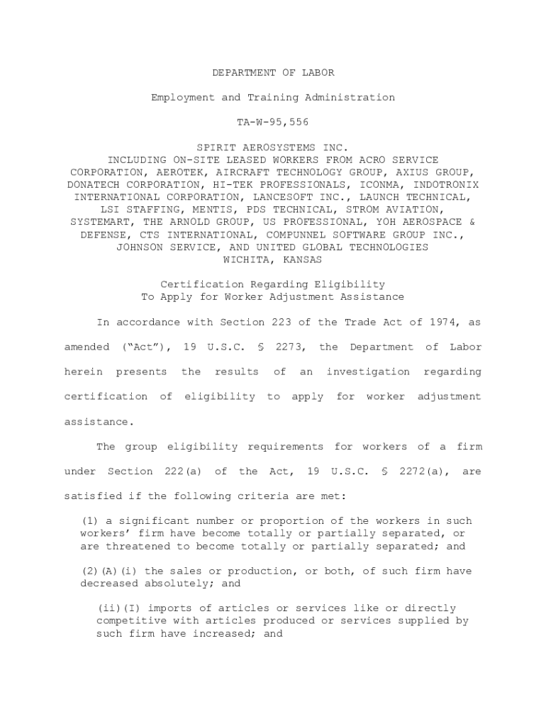DEPARTMENT OF LABOR Employment and Training Administration TAW95,556 SPIRIT ECOSYSTEMS INC. INCLUDING ONSITE LEASED WORKERS FROM ACRE SERVICE CORPORATION, AERATED, AIRCRAFT TECHNOLOGY GROUP, AXIS