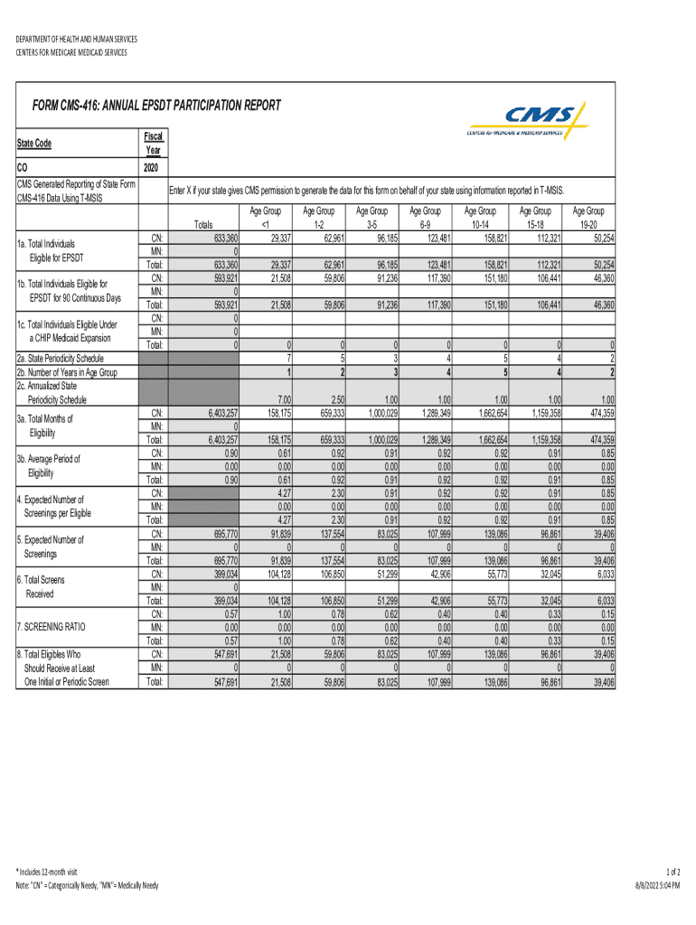 Get the free form cms-416: annual epsdt participation report hcpf