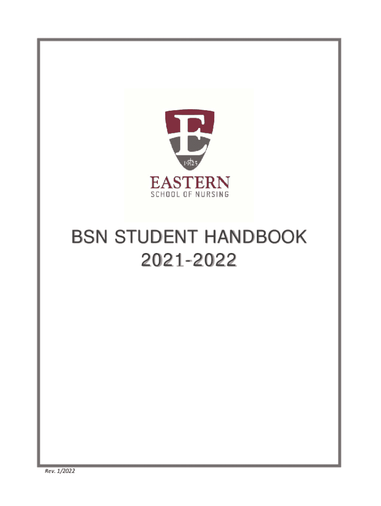 BSN STUDENT HANDBOOK 20212022Rev. 1/2022TABLE OF CONTENTS School of Nursing Directory ............................................................................................. 1 Eastern University