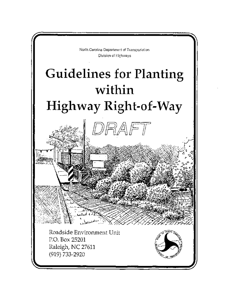 North Carolina Department of Transportation Division of HighwaysGuidelines for Planting within Highway RightofWay!DRAFTRoadside Environment Unit P.O. Box 25201 Raleigh, NC 27611 (919) 7332920IGUIDELINES