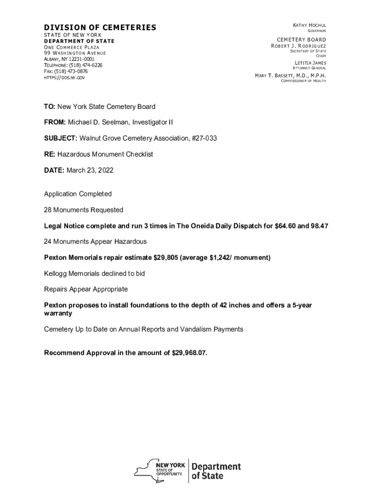 Get the free dos.ny.gov system filesTO: New York State Cemetery Board - Department of State - dos ny