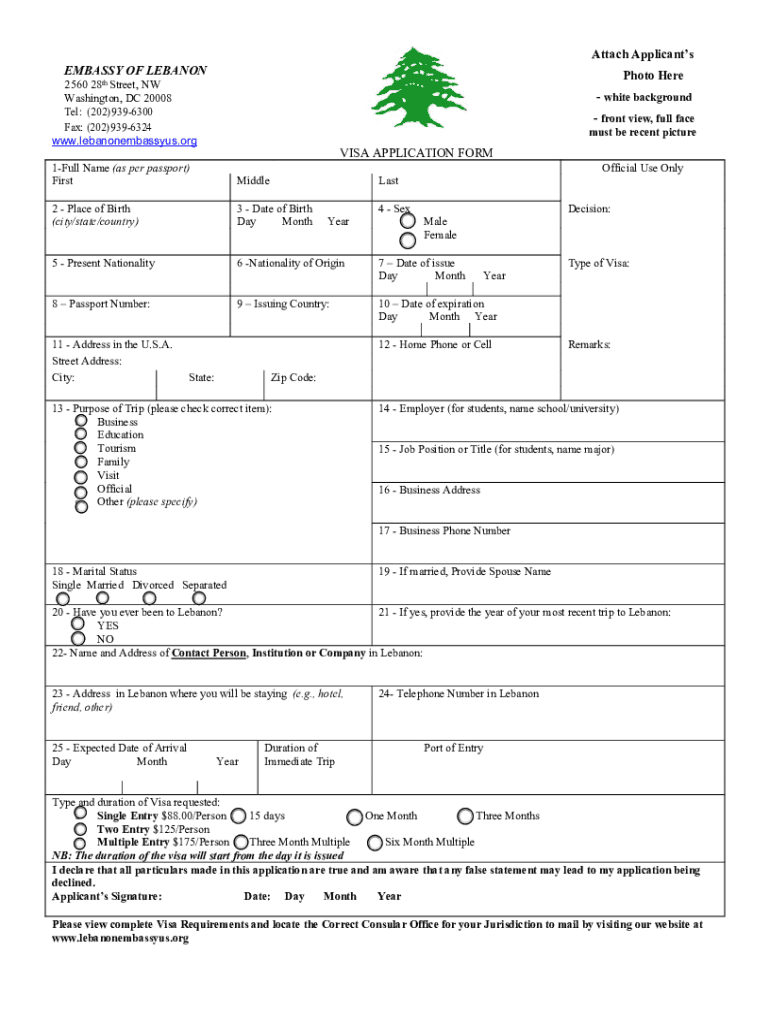 Attach ApplicantsEMBASSY OF LEBANONPhoto Here2560 28th Street, NW Washington, DC 20008 Tel: (202) 9396300 Fax: (202) 9396324 www.lebanonembassyus.org white background front view, full face must be