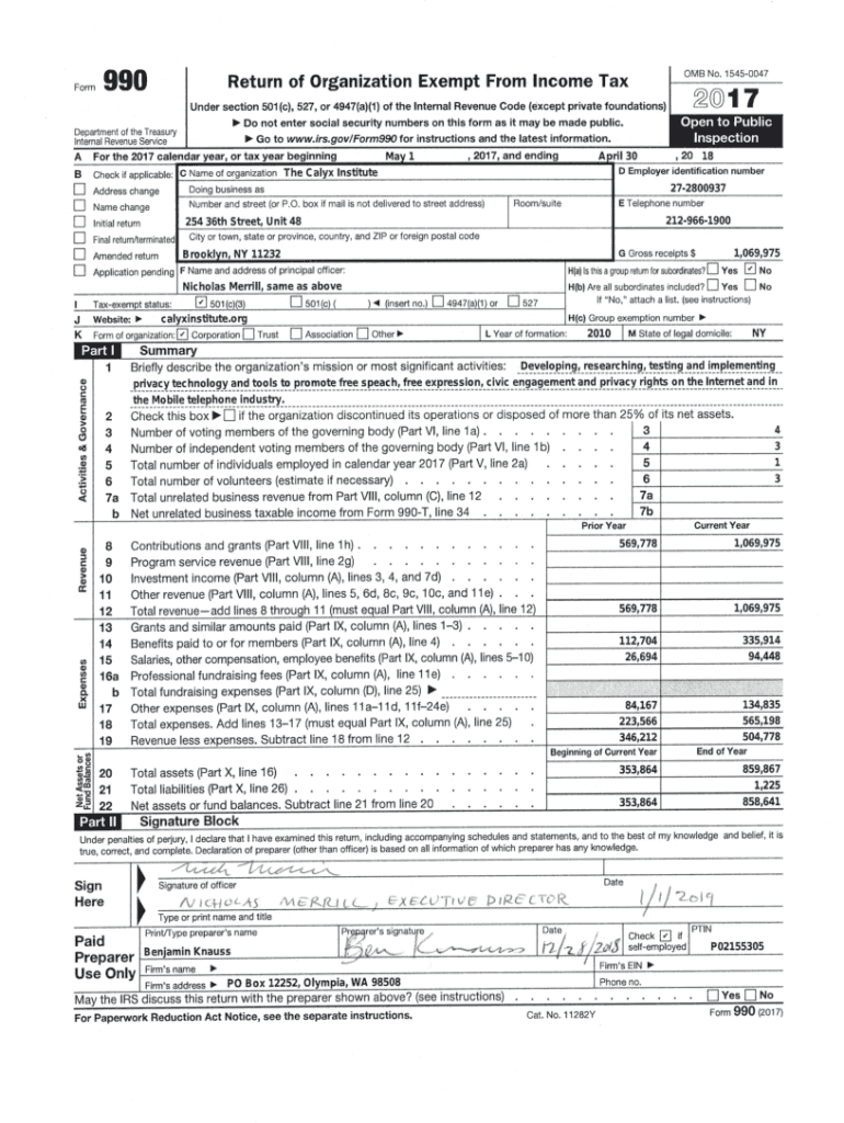 Page 2Form 990 (2017)Part III 1Statement of Program Service Accomplishments Check if Schedule O contains a response or note to any line in this Part III. . . . . . . . . . . . . Briefly describe the