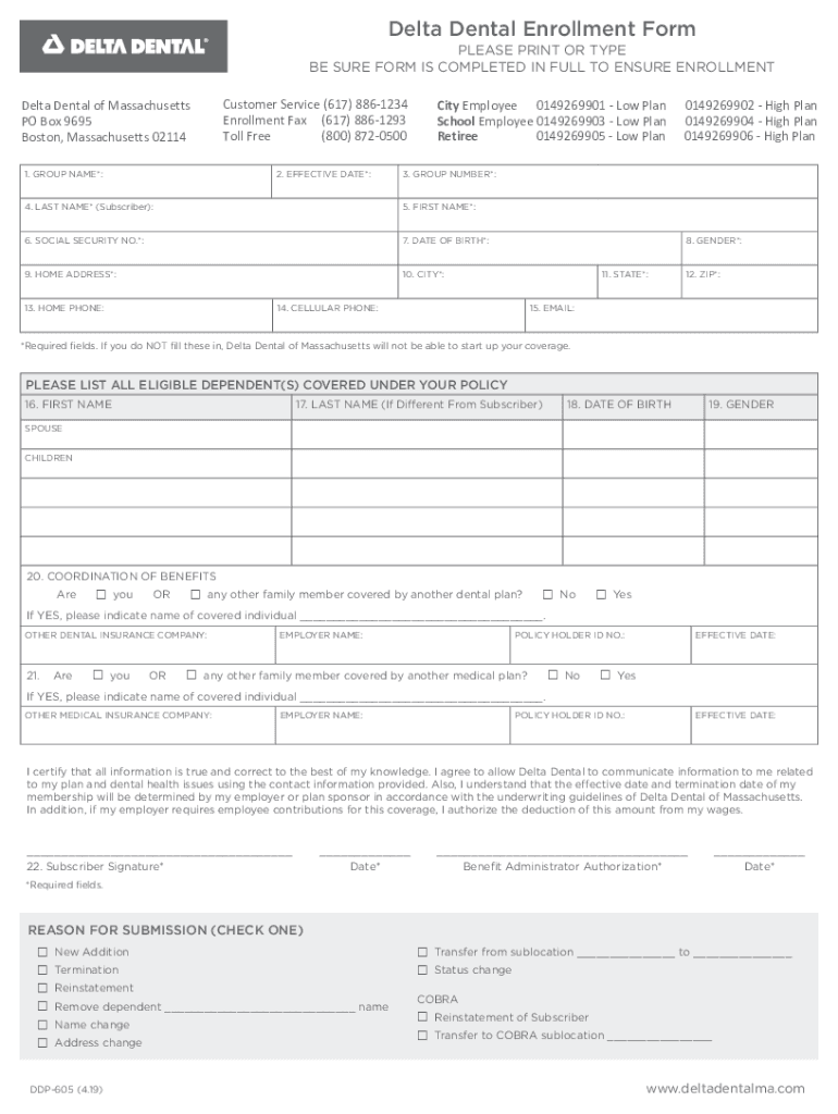 Get the free deltadentalma.comresourcesformsDelta Dental Enrollment Form - Delta Dental of Massac...