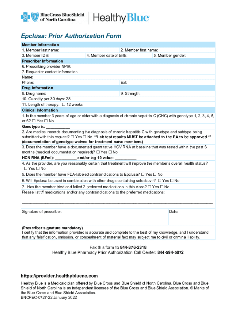 Get the free Epclusa (; Velpatasvir ) Prior Authorization Request Form