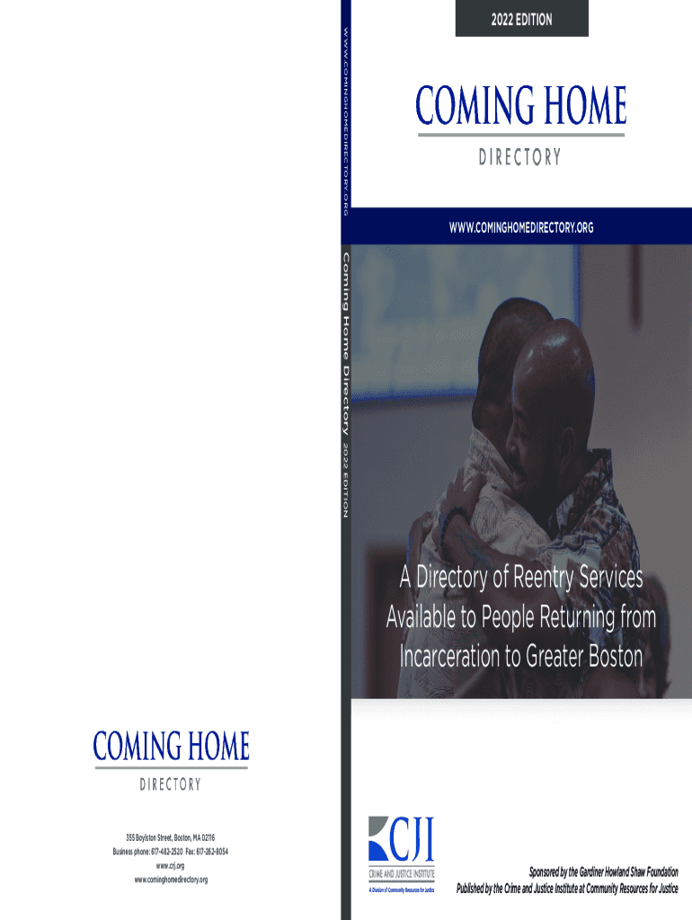 WWW.COMINGHOMEDIRECTORY.ORG2022 EDITION WWW.COMINGHOMEDIRECTORY.ORG Coming Home Directory 2022 EDITION Directory of Reentry Services Available to People Returning from Incarceration to Greater Boston355