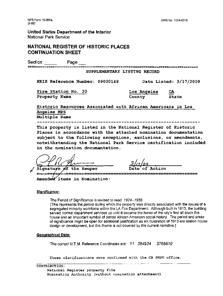 NFS Form 10900a (886)OMB No. 10240018United States Department of the Interior National Park Service NATIONAL REGISTER OF HISTORIC PLACES CONTINUATION SHEET Section ___Page __ SUPPLEMENTARY LISTING