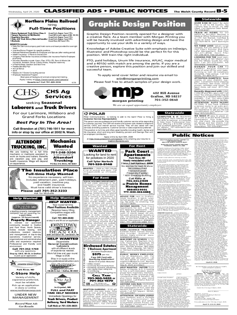 Wednesday, April 29, 2020CLASSIFIED ADS PUBLIC NOTICESNorthern Plains Railroad