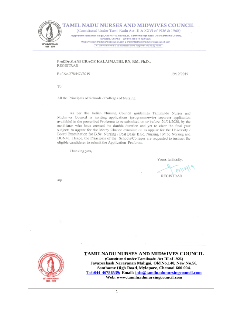 TAMILNADU NURSES AND MIDWIVES COUNCIL template instructions