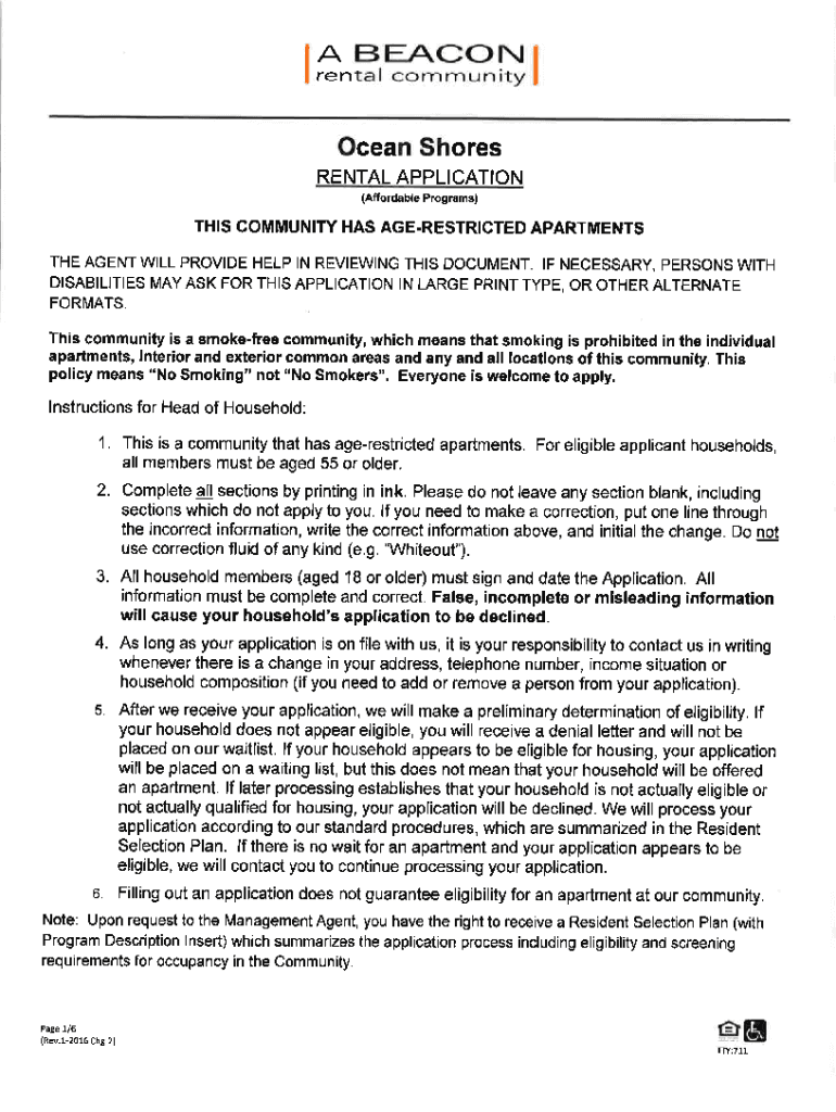 LA Etc)ti the. Total cornrnLrntyI Ocean Shores RENAL AP PLACATION (Affordable Programs)THIS COMMUNITY HAS AGE.RESTRICTED APARTMENTS THE AGENT WILL PROVIDE HELP IN REVIEWING THIS DOCUMENT. IF NECESSARY,