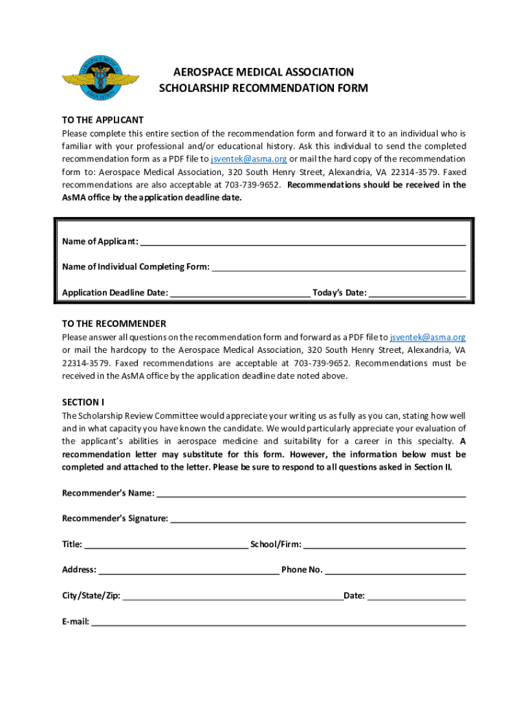 Get the free www.asma.orgasmamediaAEROSPACE MEDICAL ASSOCIATION SCHOLARSHIP RECOMMENDATION FORM