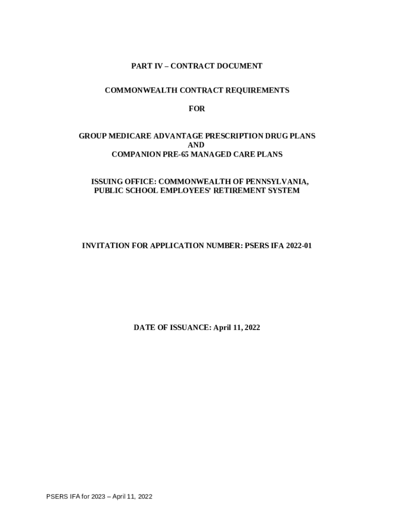 What is PART IVCONTRACT DOCUMENT COMMONWEALTH CONTRACT REQUIREMENTS FOR ... Form?